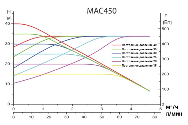 Гидравлические характеристики насосной станции MAC 450