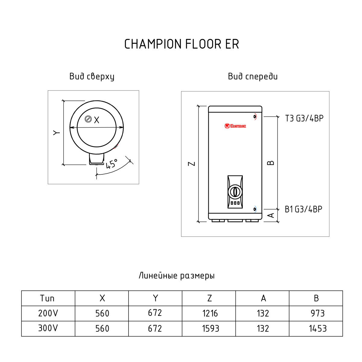 Водонагреватель большого объёма серии CHAMPION FLOOR объемом 100 литров. С механическим управлением. Внутренний бак с покрытием из биостеклофарфора, тэн из нержавеющей стали.