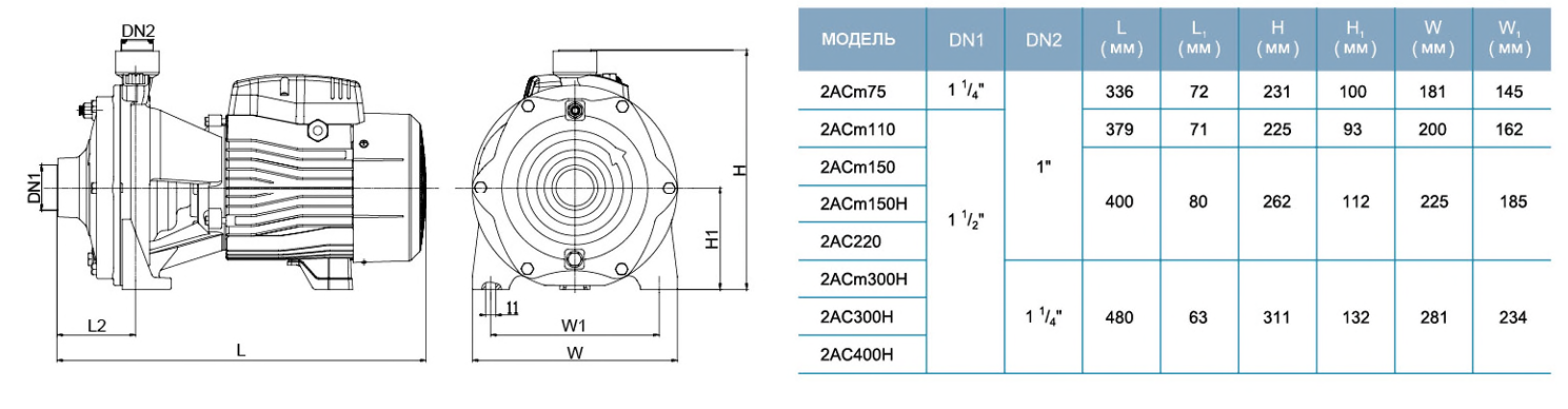 Высокопроизводительный центробежный двухступенчатый насос 2ACm75 предназначен для перекачивания чистой, не содержащей абразивных частиц (песка) воды из колодцев и емкостей.